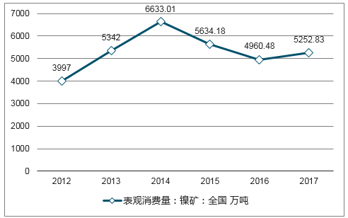 全球鎳礦儲量排名前三的國家分別為澳大利亞、巴西、俄羅斯,分別占全球鎳礦儲量25.68%、16.22%、10.27%,中國鎳礦儲量排名全球第八。產(chǎn)量上看,印度尼西亞鎳礦產(chǎn)量為最高,2017年達40萬噸,占全球鎳礦總產(chǎn)量19.05%。2017年我國鎳礦的表觀消費量達5252.83萬噸,僅10萬噸左右的鎳礦產(chǎn)量明顯不足以支撐我多對鎳礦的需求。因此,我國鎳礦主要來源于國外進口。截至2018年1月,印尼已批準(zhǔn)鎳礦出口總配額2644萬噸,2018年第一季度累計進口鎳礦數(shù)量已達329.77萬噸。