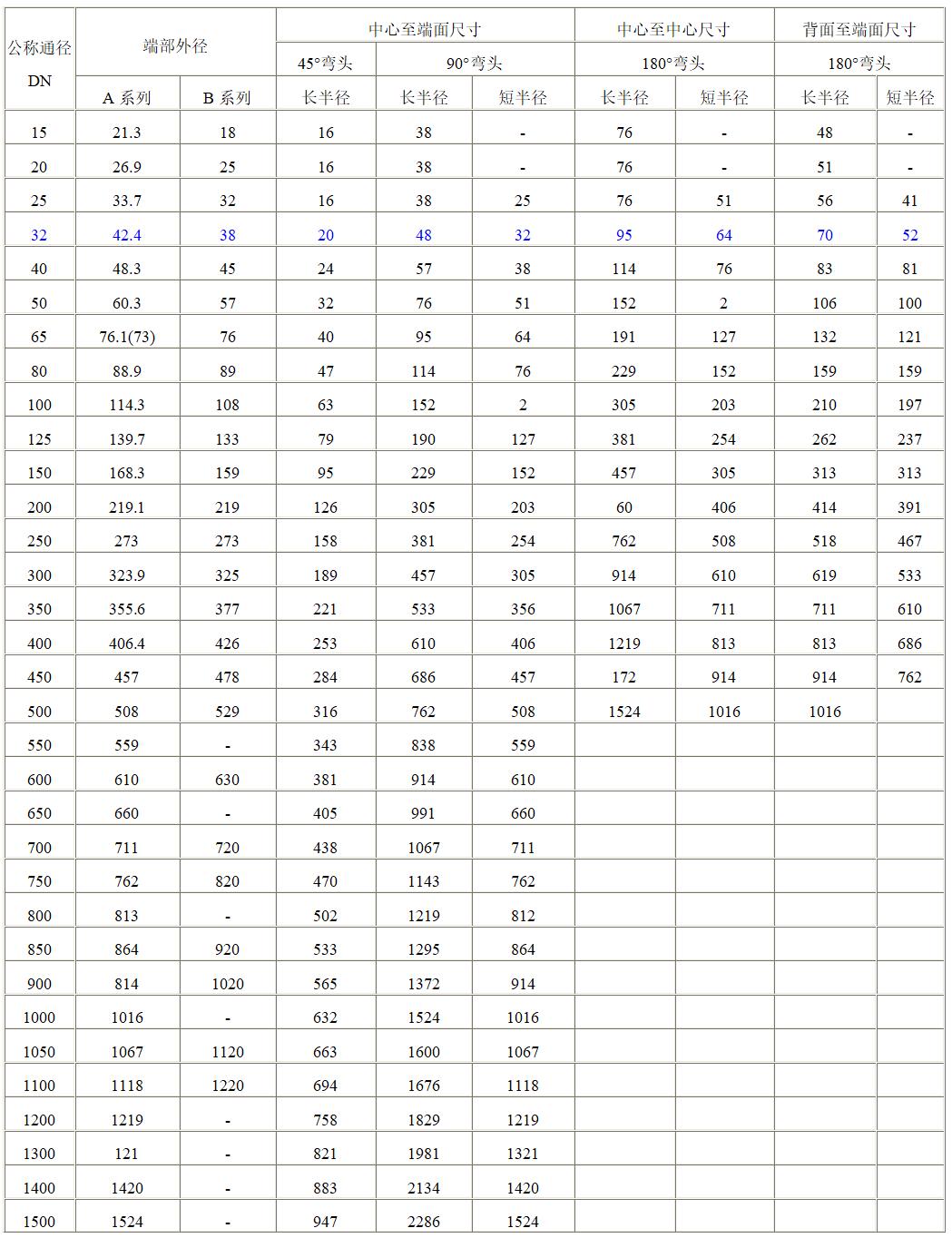 不銹鋼彎頭標準尺寸表